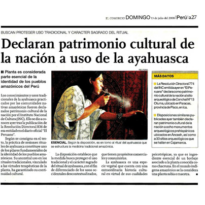 El conocimiento de la Medicina Tradicional Amazónica y sus beneficios son un legado ancestral para la humanidad y como Patrimonio Cultural del nuestro país debe ser respetado, valorado, protegido y preservado para nuestras generaciones futuras.